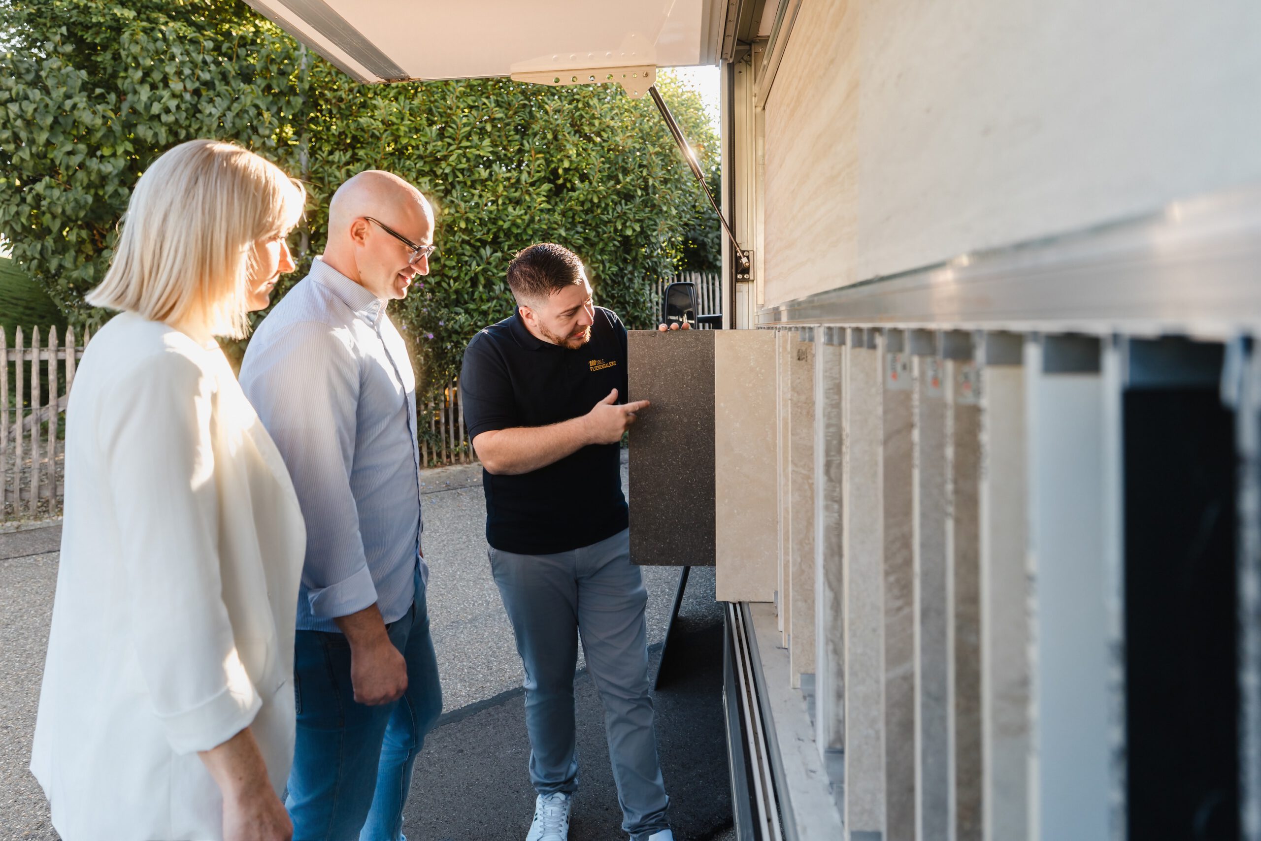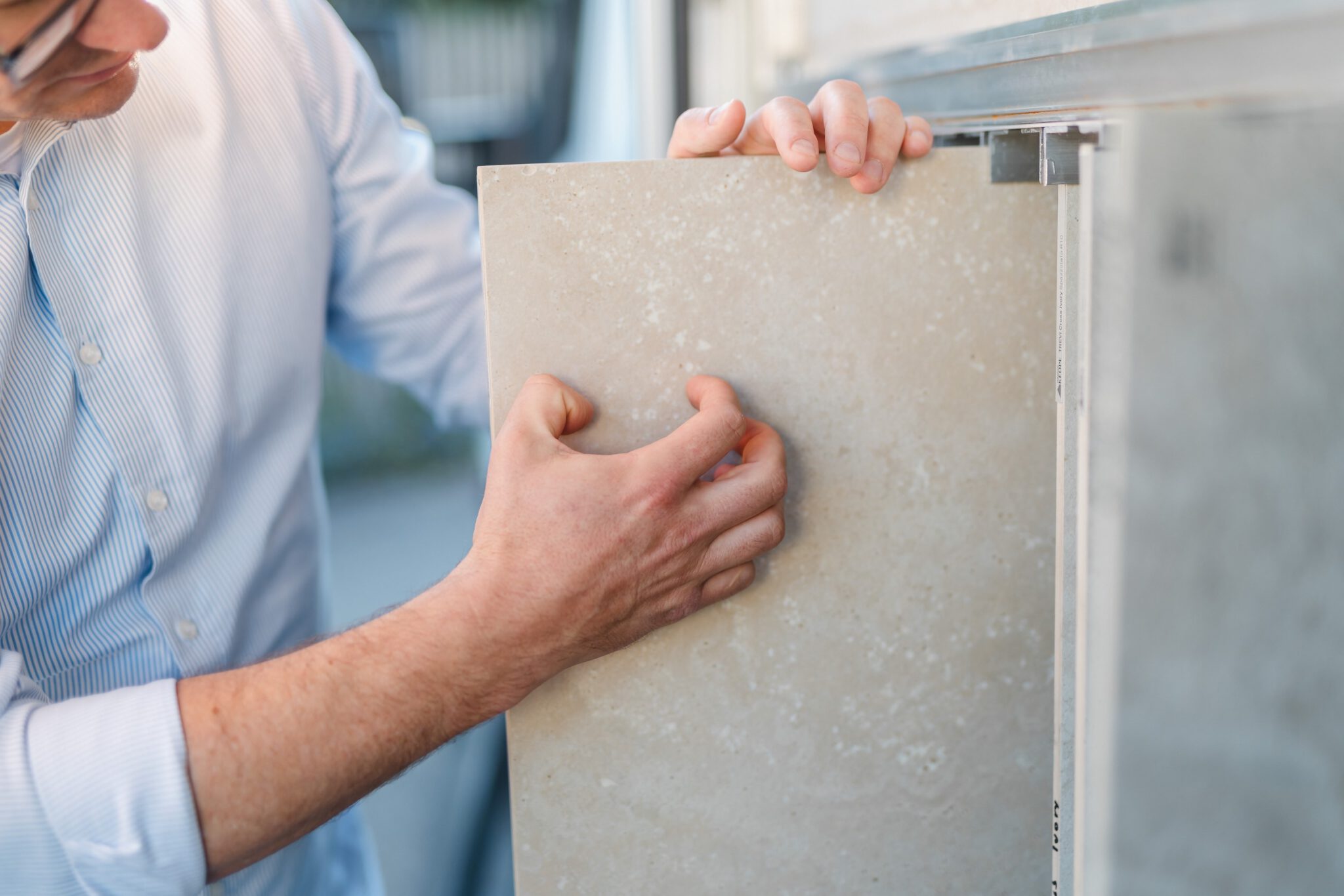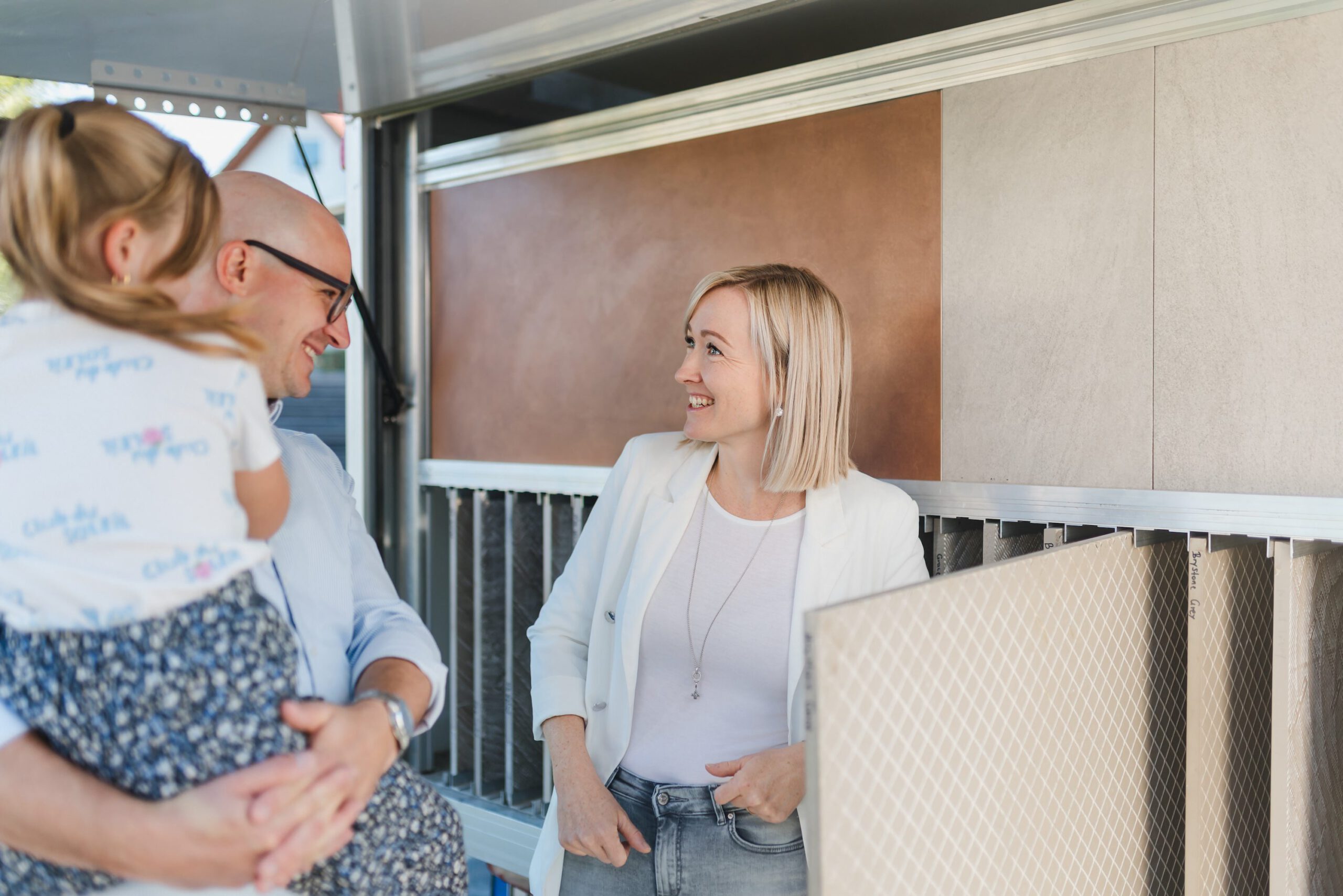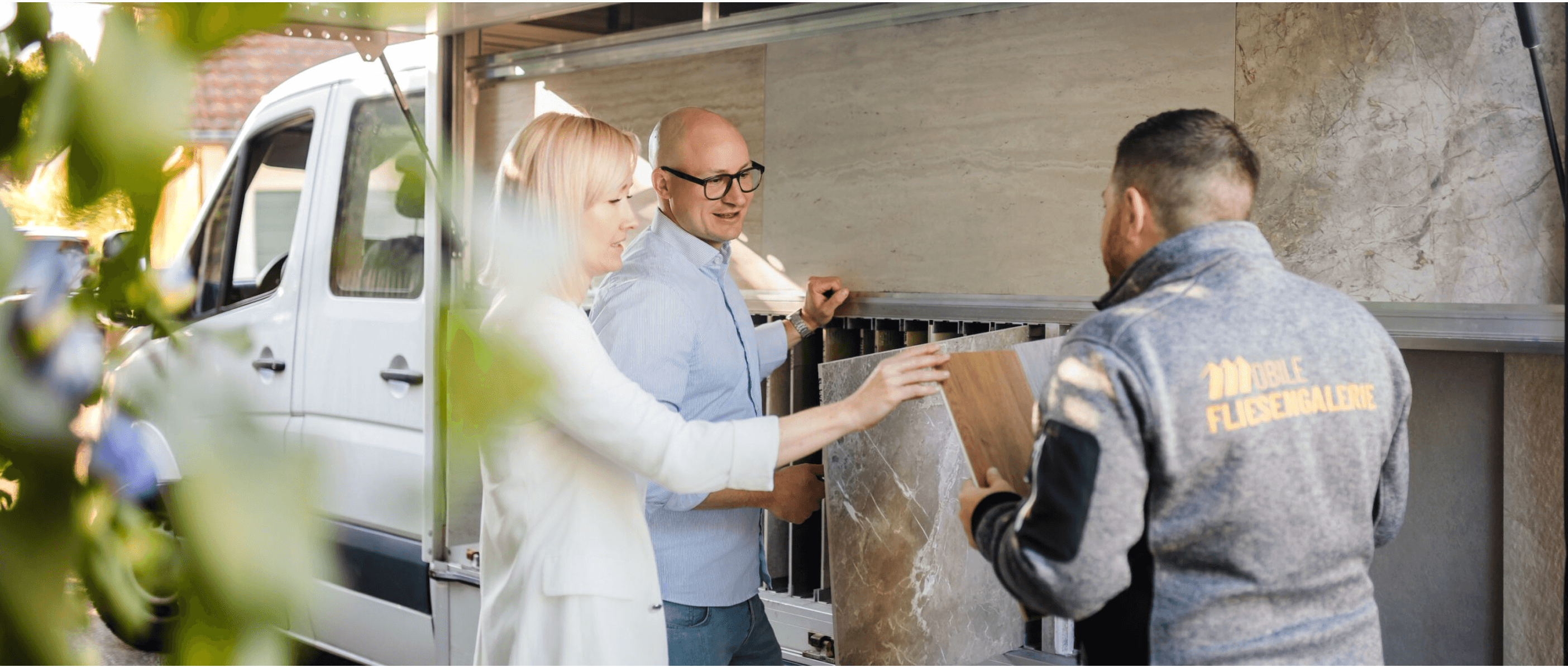 Sparen Sie sich die Fahrt zum Händler in Freiburg und Umgebung. Erleben Sie über 250 Premium-Fliesen direkt im echten Licht Ihrer Räume - mit unserer kostenlosen mobilen Fliesengalerie.