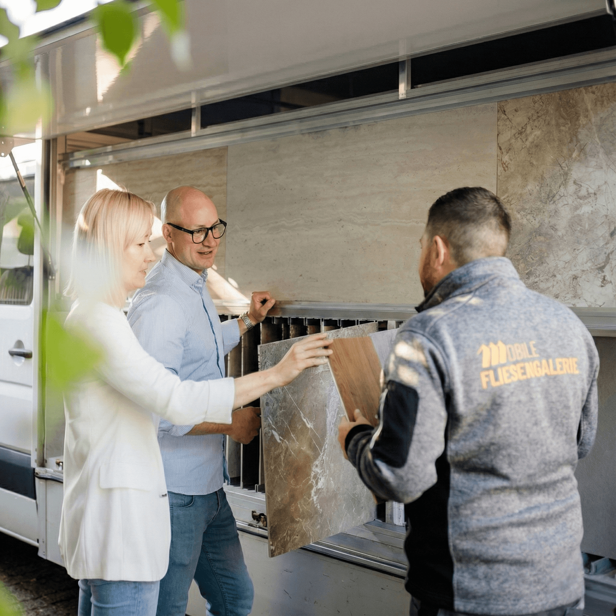 Wir finden gemeinsam die perfekte Fliese, messen auf Wunsch aus und liefern direkt auf die Baustelle.