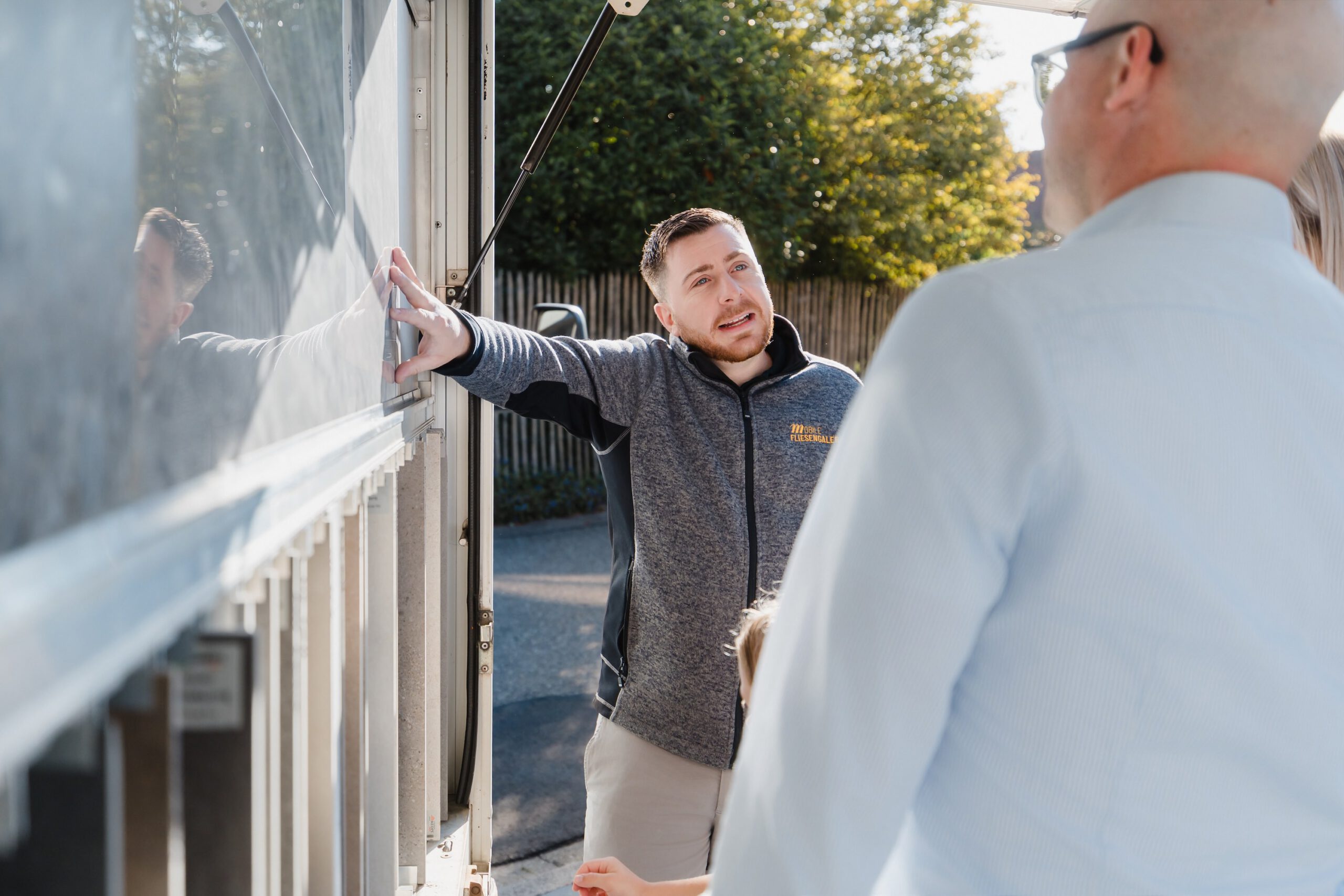Wir parken mit unserer mobilen Galerie bei Ihnen.